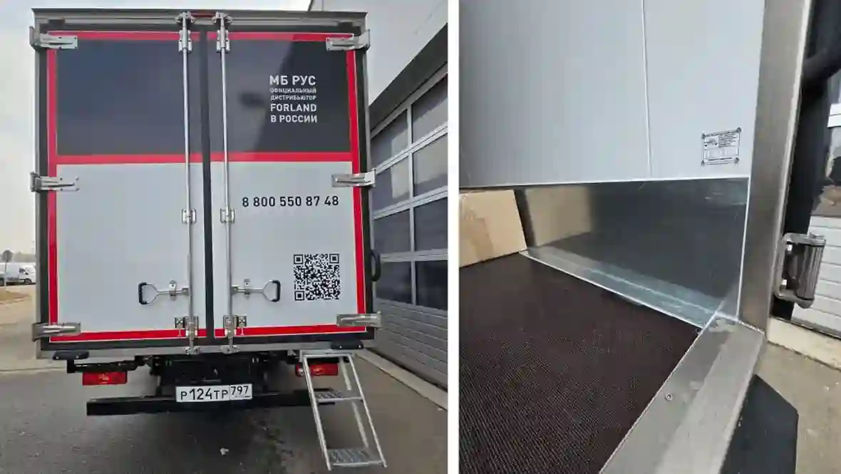 На шасси FORLAND установлен 22,1-кубовой изотермический кузов производства нижегородского ООО «Автомеханический завод». Он изготовлен из сэндвич-панелей с наружной и внутренней обшивкой из плакированного металла и утеплителем из экструдированного пенополистирола.В проёмах задних ворот морозостойкие резино-пластиковые уплотнители. Влагостойкий пол выполнен из сетчатой фанеры. Фурнитура на задних воротах изготовлена из нержавеющей стали...