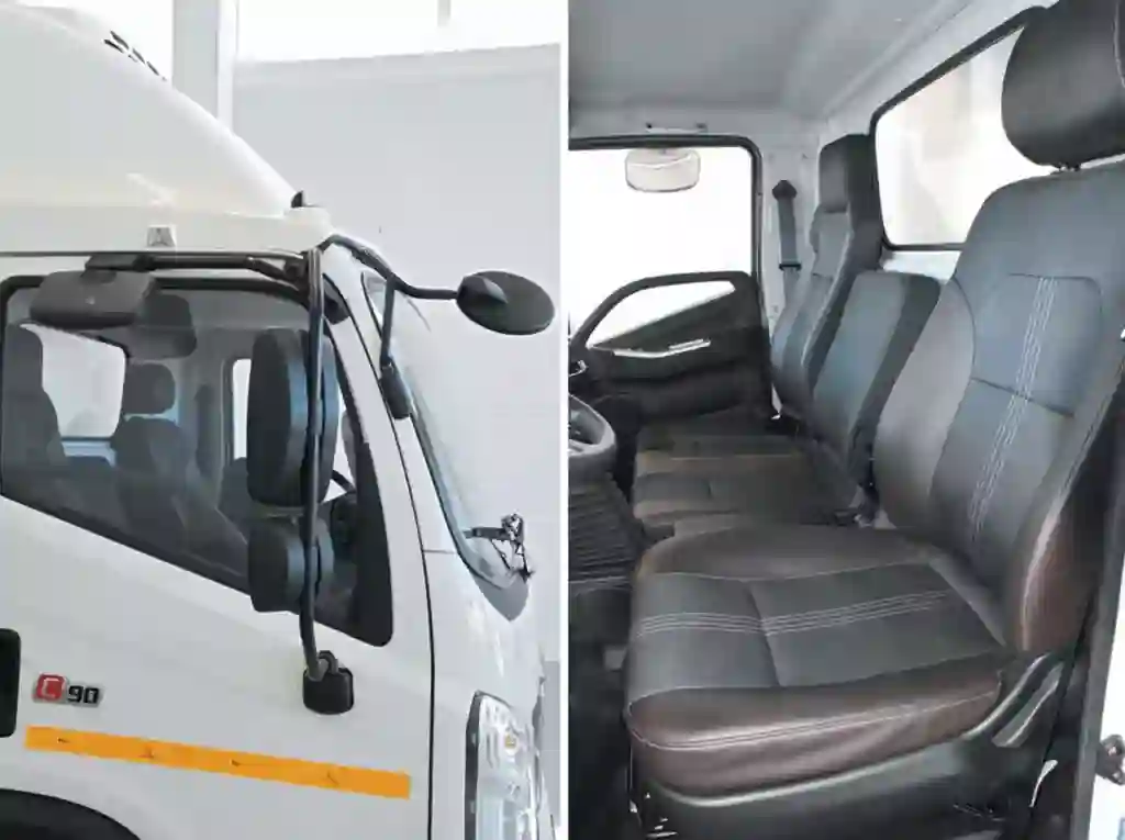 Зеркала обеспечивают прекрасный обзор. Кабина официально трехместная, но среднее пассажирское кресло более чем скромное