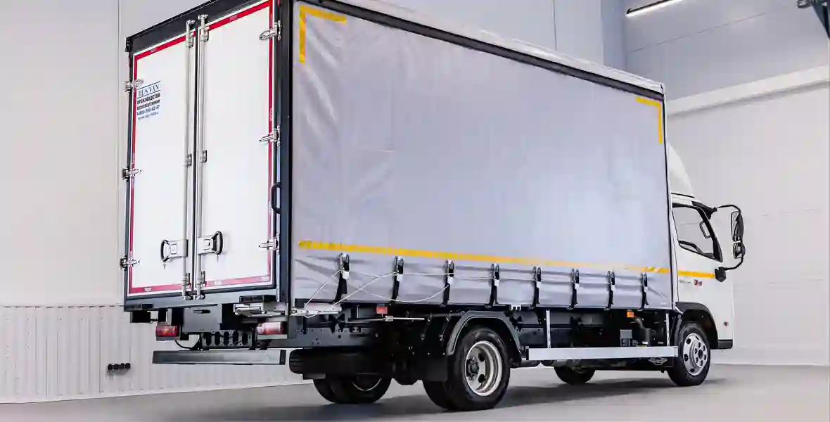 Благодаря изготовлению бортов из прочного анодированного алюминия, облегчённым стойкам и применению пластика при производстве дверей удалось снизить вес надстройки и сохранить ее максимальные размеры. Для надежного закрепления груза в обвязочном профиле предусмотрены такелажные петли. Еще одно важное преимущество кузова – высокопрочный тент плотностью 650 гр/м, который сохраняет эластичность при низких температурах воздуха и обеспечивает защиту груза.